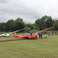 Bei manchen Landungen flog das Segelflugzeug etwas steiler in einem Bogen die Landebahn an, andere Landungen waren geradlinig und sehr flach. Nach der Landung rollten die Segelflugzeuge vorsichtig in der Nebenbahn aus, um genügend Platz für die nächsten landenden Segelflugzeuge zu gewährleisten. Dabei wurden immer ein paar Helfer benötigt, die entlang der Nebenbahn, beim Zurückschieben der Segelflugzeuge halfen (Foto18). Im Verlaufe des Vormittages musste jeder mal beim Zurückschieben der Segelflugzeuge helfen.